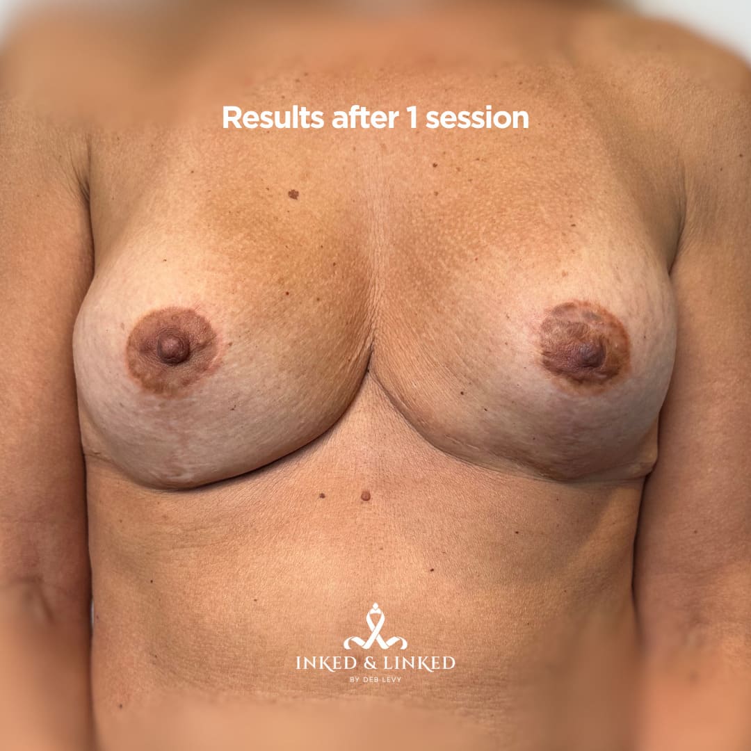 Areola restoration recreates or enhances the natural appearance of the areola and nipple area. Ideal for clients post-mastectomy, top surgery, or breast reconstruction, this technique uses custom-blended pigments and 3D hyper-realism shading to restore a realistic, balanced look.