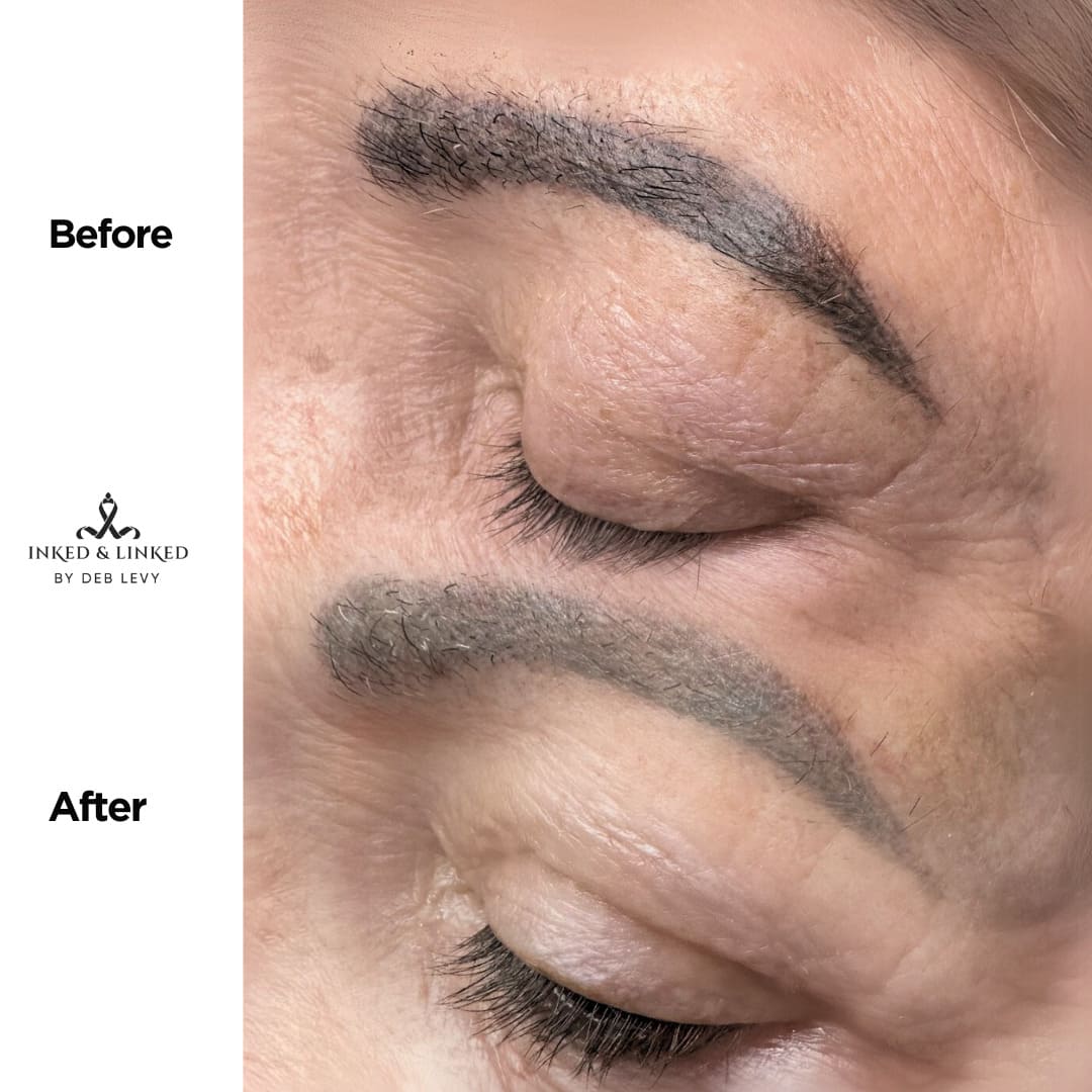 A special solution is applied deep into the skin to lift and fade pigment. Treatment must be applied every 6-8 weeks until the desired look is achieved. Includes aftercare.