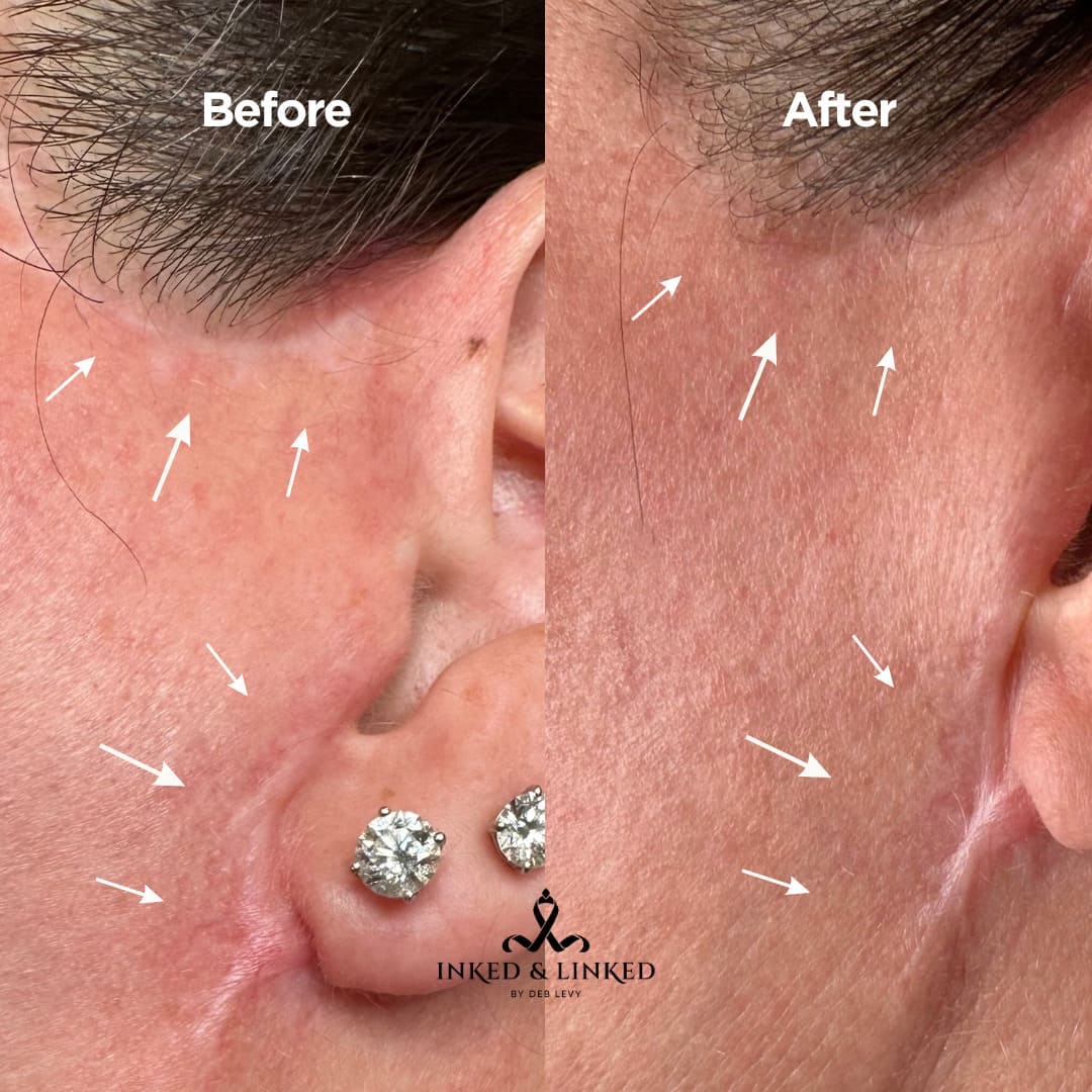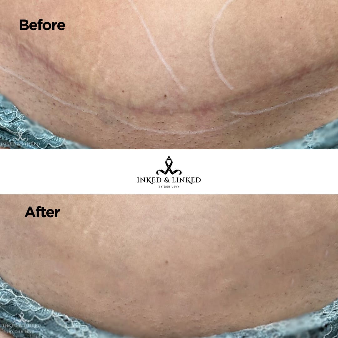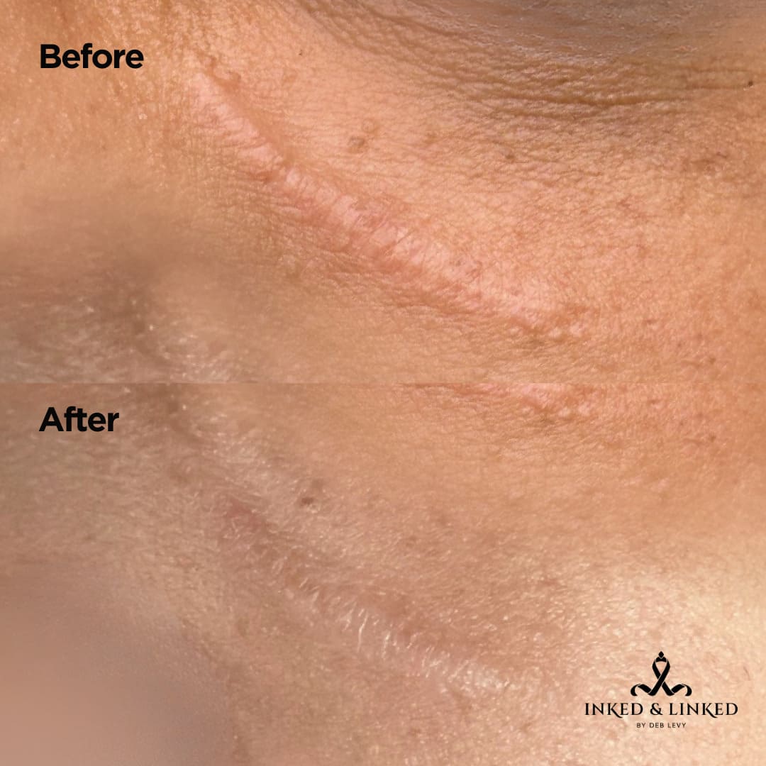 Scar camouflage is a procedure using pigments or special serums. This procedure helps stimulate collagen, breaks down the scar and reduces the appearance. The serums used are all natural and enriched with vitamins, essential oils and hyaluronic acid. Starting price is for small fine-line scars. Price varies based on type and size of scar. Inkless and ink methods can be used depending on desired treatment. Final price will be determined at consultation.