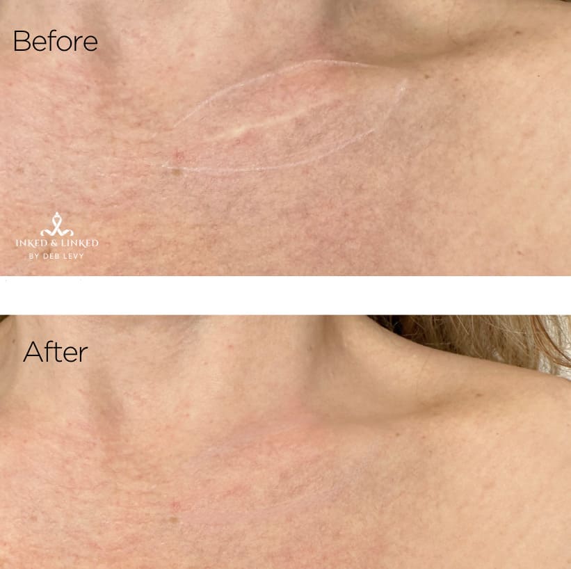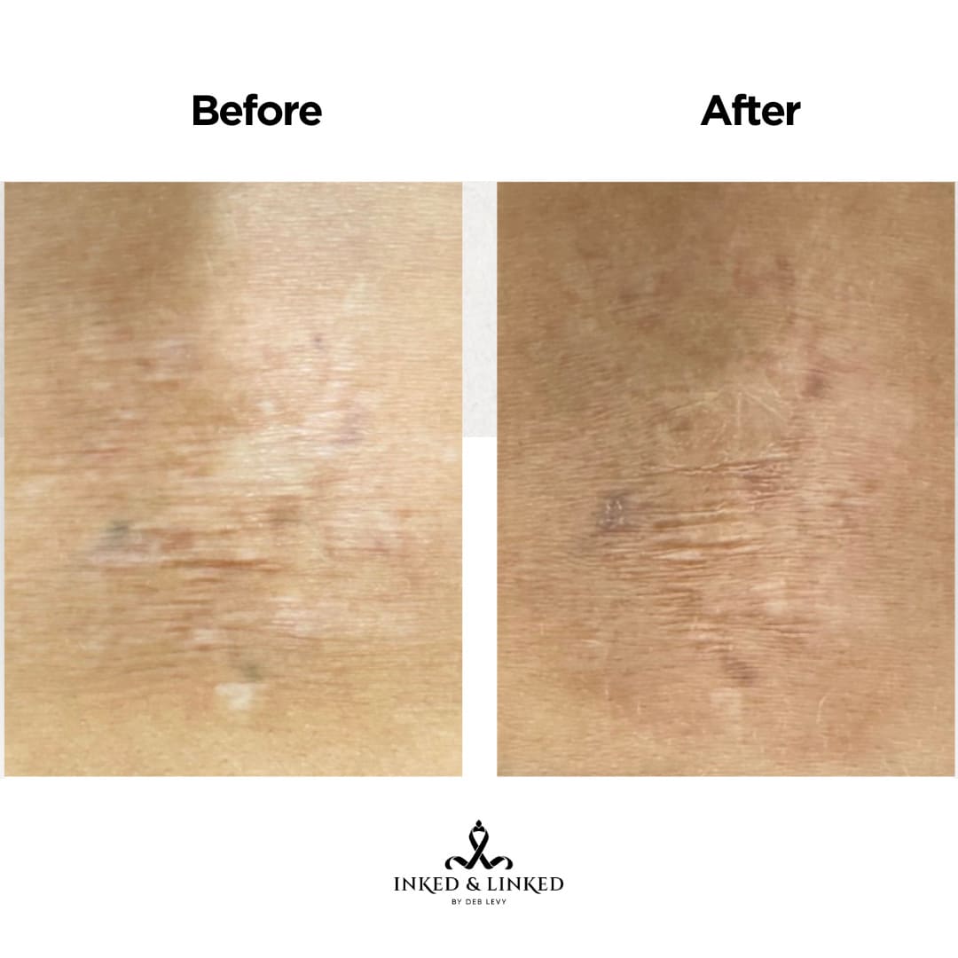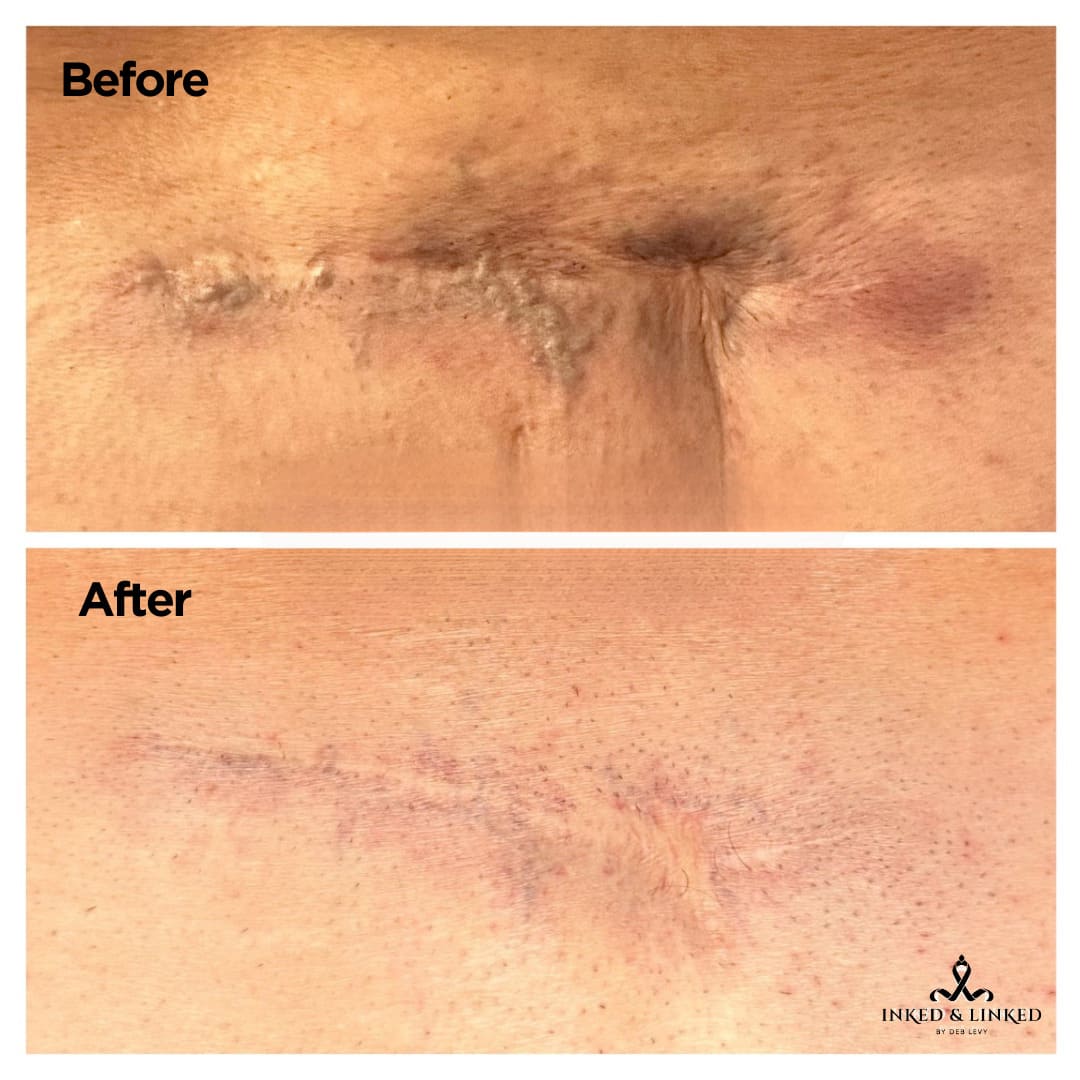 Scar camouflage is a procedure using pigments or special serums. This procedure helps stimulate collagen, breaks down the scar and reduces the appearance. The serums used are all natural and enriched with vitamins, essential oils and hyaluronic acid. Starting price is for small fine-line scars. Price varies based on type and size of scar. Inkless and ink methods can be used depending on desired treatment. Final price will be determined at consultation.